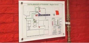 Ook externe diensten, brandweer en ambulance, kunnen zich goed oriënteren op basis van de ontruimingsplattegronden.